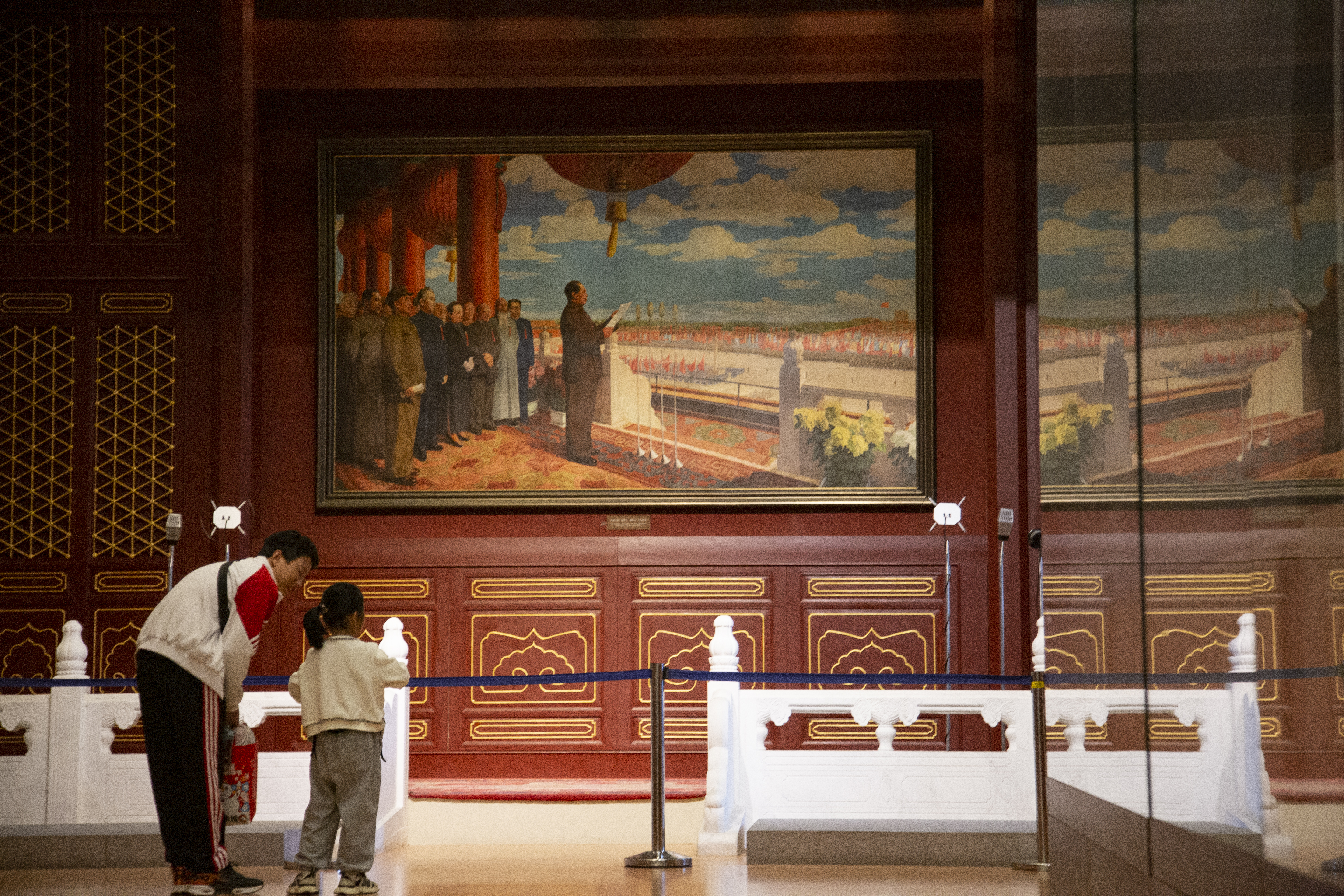 2023年5月6日,一位小朋友在國博“復興之路”基本陳列中觀看《開國大典》油畫。攝影董芳/人民畫報