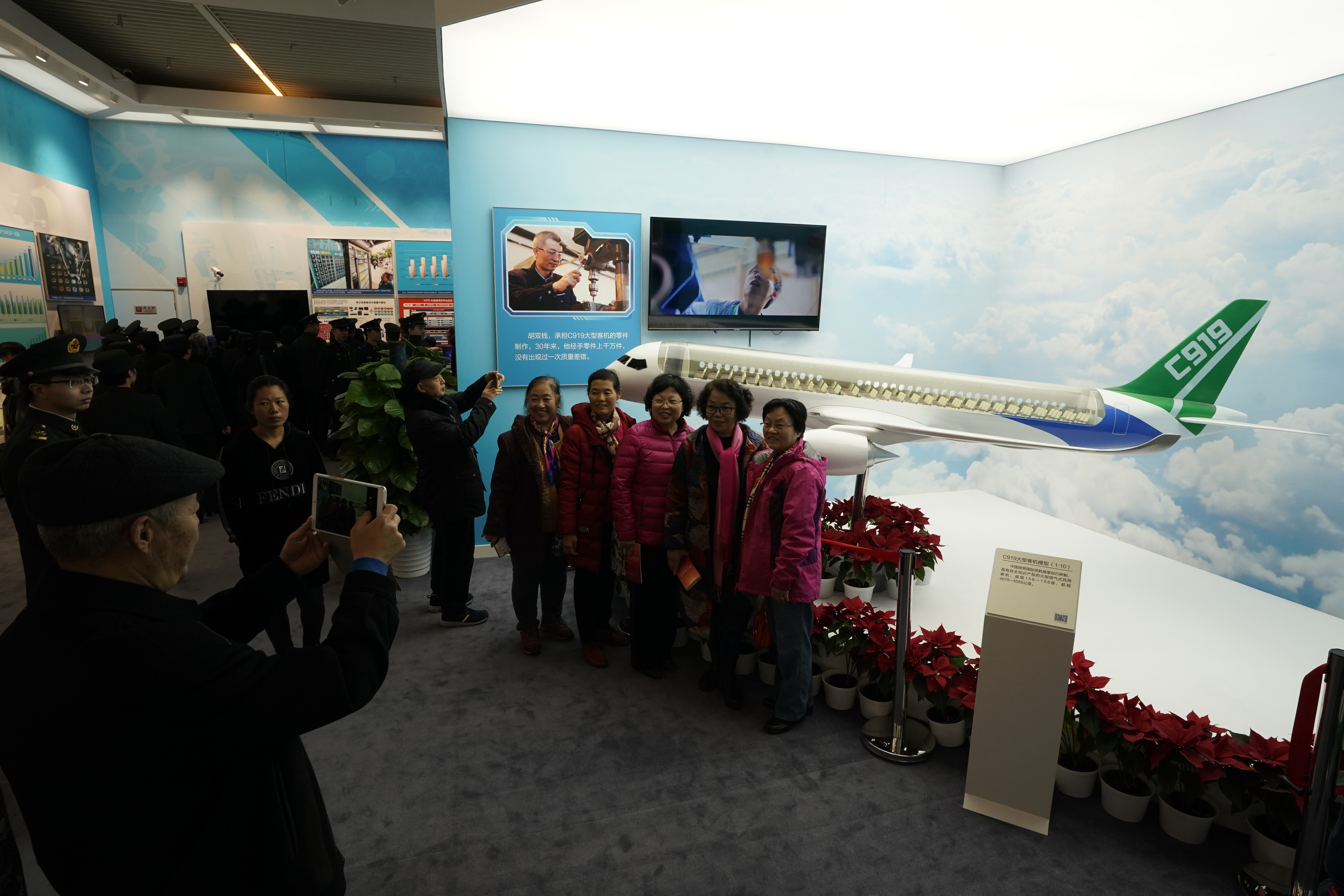 2018年11月28日,觀眾在國博“偉大的變革——慶祝改革開放40周年大型展覽”中參觀國產大飛機C919模型。 C919大型客機是繼運-10之后,我國第一款真正意義上的民航大飛機。2023年5月28日,C919圓滿完成首個商業航班飛行,標志著該機型正式進入民航市場,開啟市場化運營、產業化發展新征程。攝影萬全/人民畫報