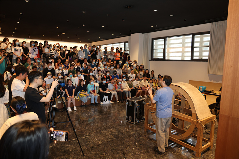 濮存昕、馮遠征、何冰、楊佳音分別出現在創作分享會現場,與觀眾進行面對面的交流與互動,共同分享難忘的戲劇記憶;一起碰“詞”兒游戲,讓觀眾在臺詞中回憶劇目名稱,實現集章打卡;《玩家》公益場演出為學生奉上精彩的演出;“戲劇課堂”不僅有“聲聲入耳”——舞臺音效及現場擬聲互動講座,讓觀眾秒變“擬音大咖”,還有“以假亂真”——舞臺道具制作體驗,由北京人藝舞美工作人員帶領觀眾現場制作特色道具,讓觀眾了解幕后的創作過程;北京人藝戲劇博物館院史特別導賞環節,由2022級北京人藝表演學員培訓班的學員擔任志愿講解員,為觀眾們生動講解人藝歷史,重拾71年珍貴回憶。