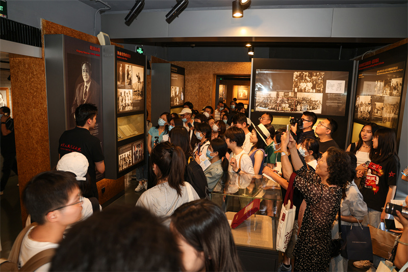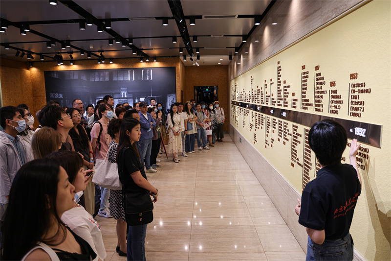 2022級北京人藝表演學員培訓班的學員擔任志愿講解員,為觀眾們講解人藝歷史(北京人藝供圖 攝影:李春光)