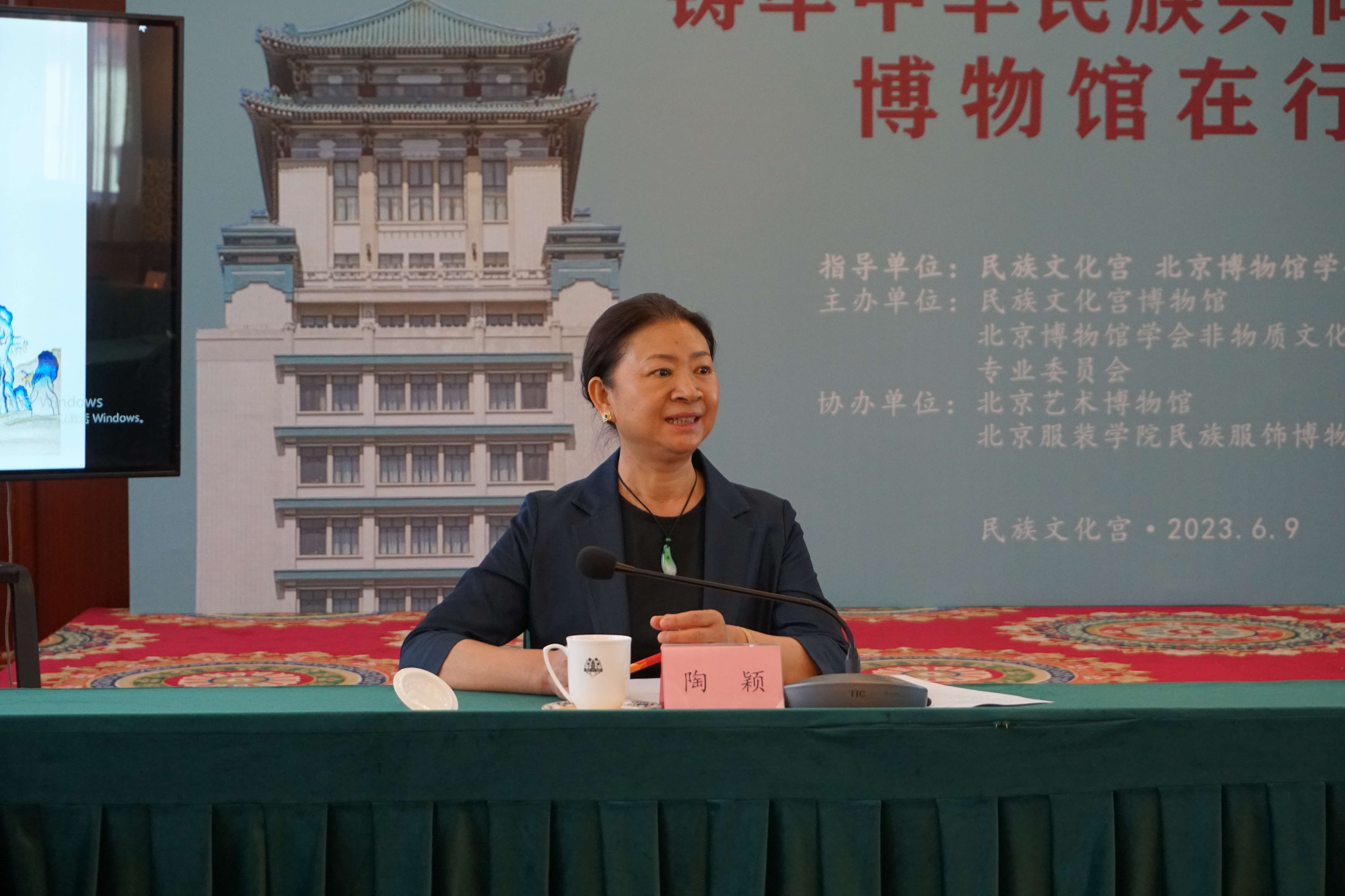 在主旨發言環節,陶穎以“有形有感有效講好民族團結進步故事”為題,介紹了民族文化宮博物館在北京市鑄牢中華民族共同體教育實踐基地建設、傳承弘揚各民族文化遺產方面的探索。北京服裝學院民族服飾博物館館長田輝作了題為“守望相助,與美同行——打造鑄牢中華民族共同體意識教育實踐基地民族服飾博物館在行動”的主題發言。北京藝術博物館副研究員李曄分享了北京藝術博物館在鑄牢中華民族共同體意識教育實踐基地建設方面的經驗。主旨報告主題突出、內容豐富,為北京地區博物館鑄牢中華民族共同體意識教育實踐基地建設積累了寶貴的經驗。
