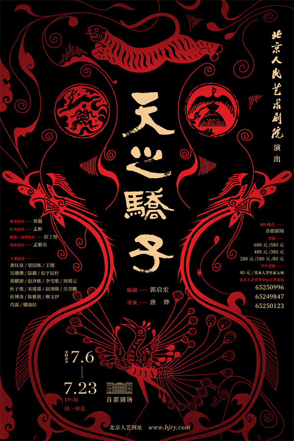 作為北京人藝最具有代表性的歷史大戲之一,《天之驕子》首演于1995年,由郭啟宏編劇,蘇民導演。劇目以東漢時期為背景,講述了曹操在三個兒子曹植、曹丕、曹彰中選擇接班人,以及曹丕稱帝后為鞏固政權而和弟弟曹植之間展開一番較量的故事。2011年導演蘇民、唐燁重排該作,選取了突出文人才情的角度進行解讀。