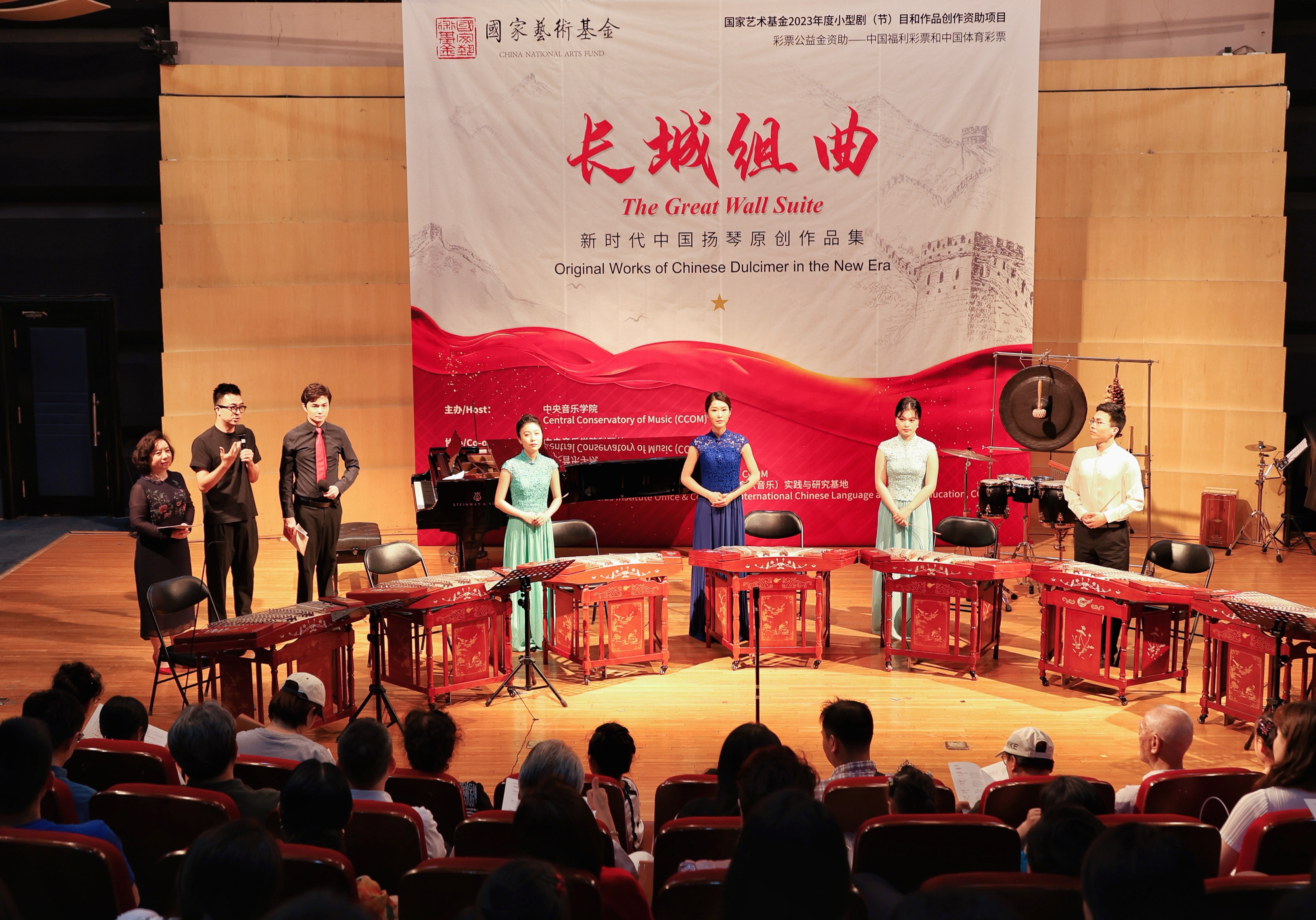 2023年7月1日,由中央音樂學院主辦,中央音樂學院科研處、中央音樂學院民樂系、中央音樂學院音樂孔子辦公室?國際中文教育(音樂)實踐與研究基地協辦的《長城組曲—新時代中國揚琴原創作品集》首場音樂會于中央音樂學院演奏廳圓滿落幕。作為揚琴學科得到國家藝術基金支持的首場原創作品集音樂會,其顯然是揚琴發展道路上繼北京現代音樂節2023年5月26日《風月無邊》世界揚琴家族專場音樂會后的又一座里程碑。