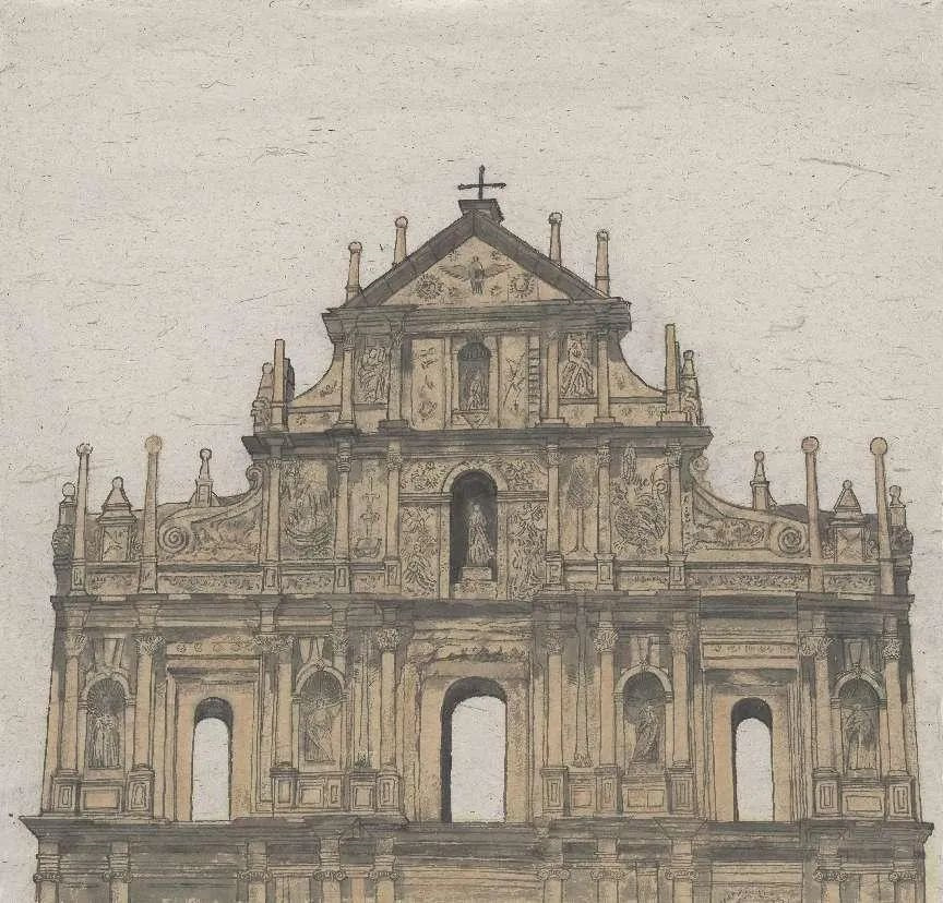 《澳·大三巴》2022年124x124cm紙本·彩墨 潘魯生