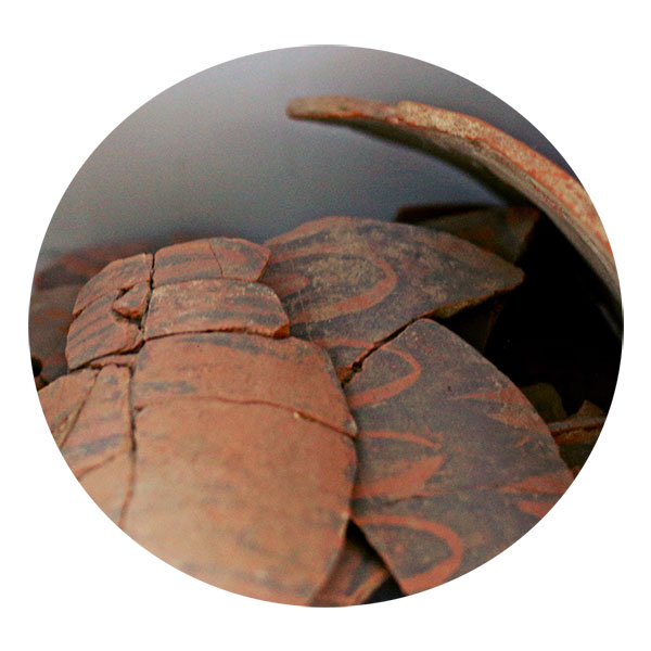 遼寧省文物考古研究院牛河梁工作站發掘的待修復的紅山文化筒形陶器殘片。 (攝影/滕妍妍)