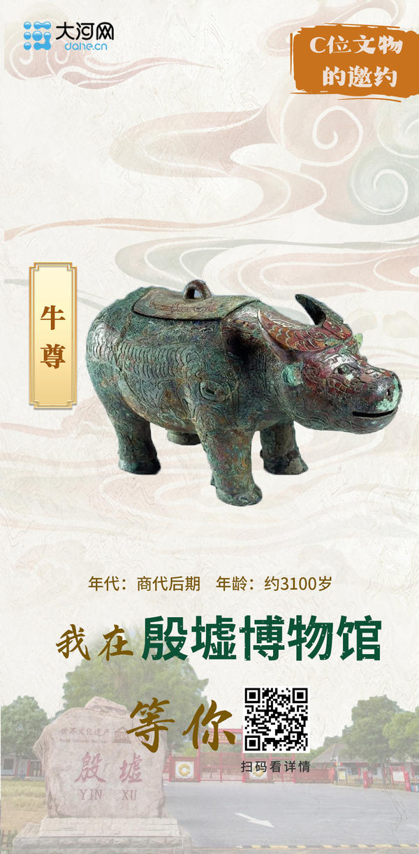 殷墟博物館現存文物有亞長牛尊、亞址方尊、玉龍、陶罍、司母辛鼎等。其中,亞長牛尊是迄今為止殷墟發現的唯一牛形青銅器,是殷墟博物館的鎮館之寶之一。