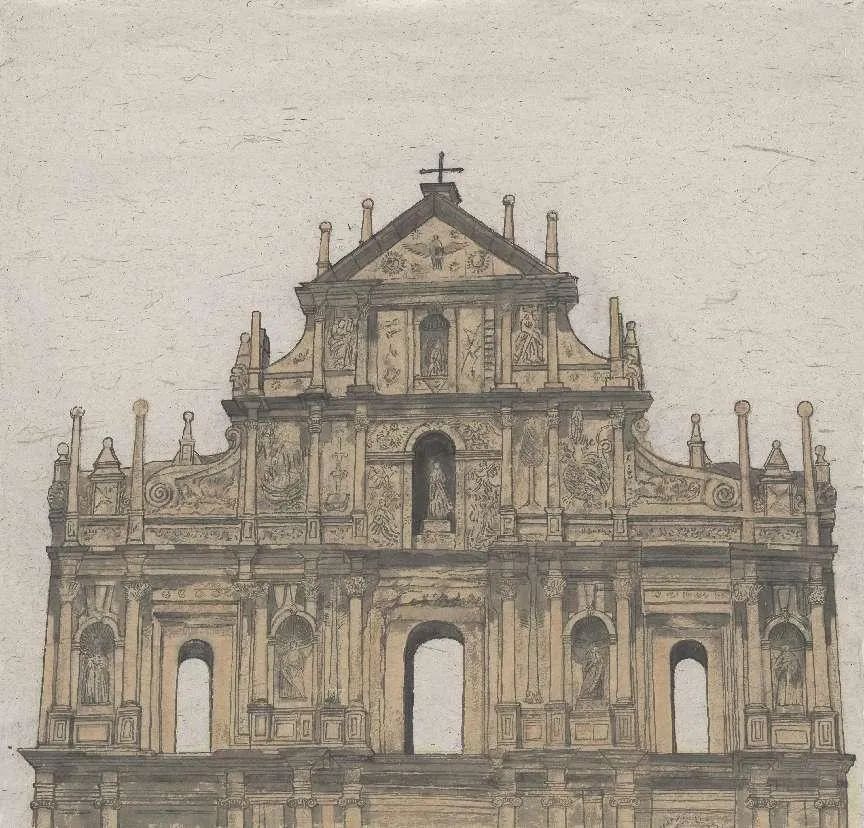 我想把這些景和物都記錄下來,就用平常的視角,匆匆一瞥或回眸而視,極目眺望或細細打量,真實地記錄我看到的大灣區,表現自己感受到的風土人情。我想,這一切要像寫生一樣真實,還原物象最本真的狀態,從整體到局部,以繪畫意象呈現出來。在古老滄桑的牌樓背后,有錯綜交織的電線天線;在巍峨莊重的墻面上,布著斑駁的苔痕水跡。舊民居新樓房穿插并置,小漁船大貨輪遙相呼應,新與舊、古老與現代、城市與鄉村就這樣自然地交織在一起。無需取舍,也不必回避,就用彩墨鋪陳它們本來的樣子,展現那一刻時空、景物、眼與心交匯的樣子。這是今天的大灣區在我心里的樣子,就像白云投影在湖面,水流云動,是此時,也是永恒。