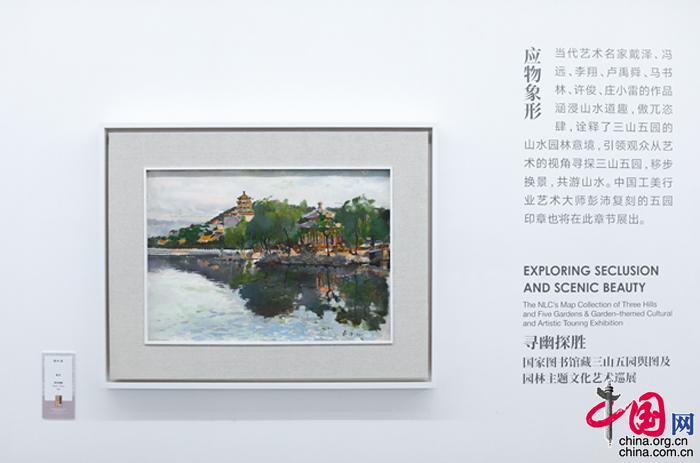 此次展覽展出作品百余件,以“三山輿圖”“應物象形”“數繪五園”“尋幽探勝”四個篇章,依次呈現國家圖書館藏代表性輿圖復制件,當代藝術名家的園林主題創作,三山五園文獻研究成果,以及中青年藝術家的國畫、油畫、雕塑裝置、數字繪畫等多元藝術創作,力求在歷史文脈的梳理和新藝術語境的構建中,為觀眾打造一個全新、立體的“三山五園”文化景觀。