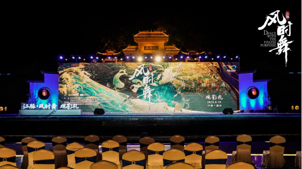 首映典禮在石鐘山前舉行,現場充滿古韻古風,極具儀式感與穿越感,以還原電影場景的雙人舞蹈,搭配石鐘山的鐘聲,正式拉開活動序幕?!帮L時舞”作為影片中的重要元素之一,也來自于民間傳說,唯美再現了“江豚拜風”的奇異景象,意在通過此景喚起大眾對“長江保護”的關注與重視。