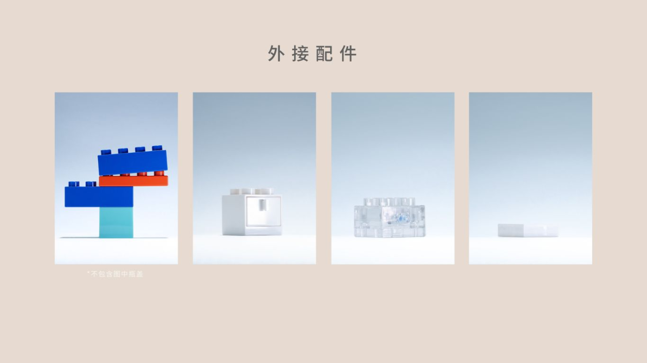 “可復用”同樣是“碧海澄澄”香水的設計特點,體現為瓶蓋基于大顆粒積木改造,可以外接大顆粒積木配件等用于收納戒指、耳環等,也可以復用至親子場景,當作一塊普通積木使用。因為瓶蓋可復用,“碧海澄澄”不同于時下香水行業流行的工藝品式設計風格,避免了丟棄和回收,體現的是中國傳統設計方法中物以致用的造物思想。