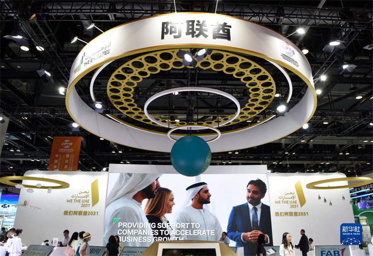 9月4日,觀眾在服貿會的阿聯酋展臺參觀。