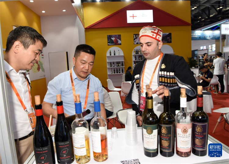 9月4日,參展商在服貿會的格魯吉亞展臺品嘗格魯吉亞葡萄酒。