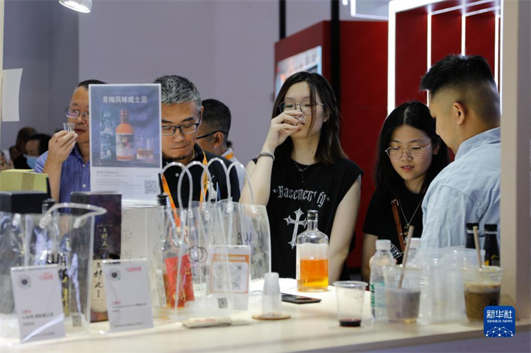 9月4日,在服貿會國家會議中心的日本展臺,觀眾在品嘗威士忌。