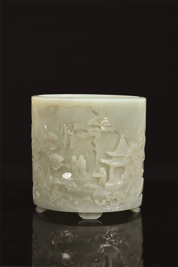 “文物精品展”展品:白玉蘭亭修禊圖筆筒 清乾隆 直徑17.5厘米高17.3厘米(北京市文物局供圖)