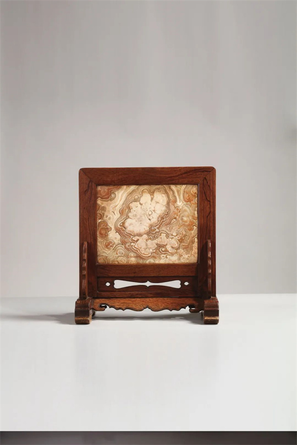 “文物精品展”展品:黃花梨嵌瑪瑙石小座屏風 明代 30*17.5*33厘米(北京市文物局供圖)