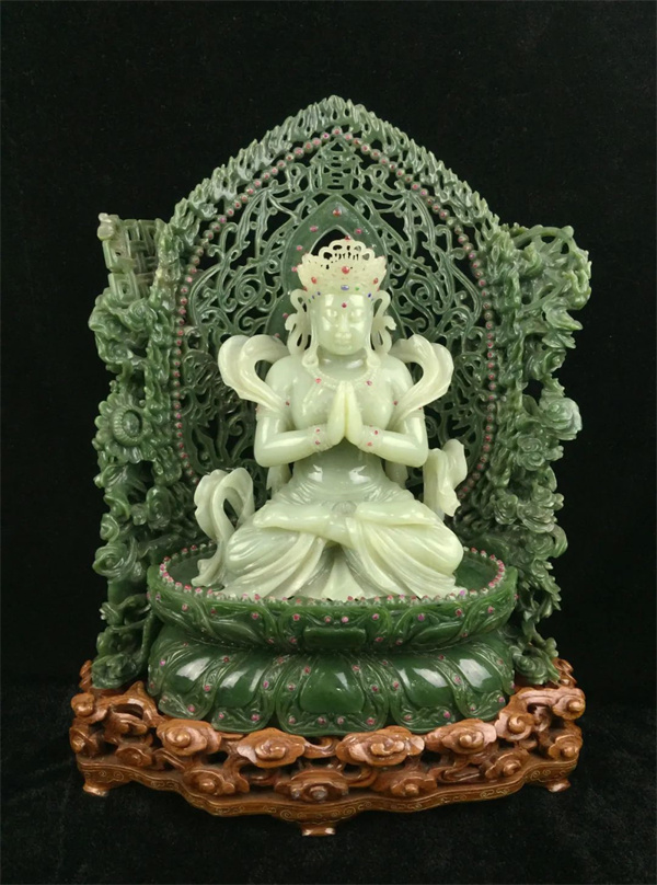 “文物精品展”展品:黃玉菩薩坐像帶碧玉座 清早期 高30厘米(北京市文物局供圖)