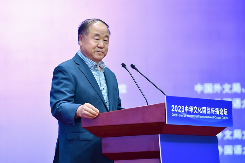 中國作家協會副主席、諾貝爾文學獎獲得者莫言發表演講(中國外文局供圖)
