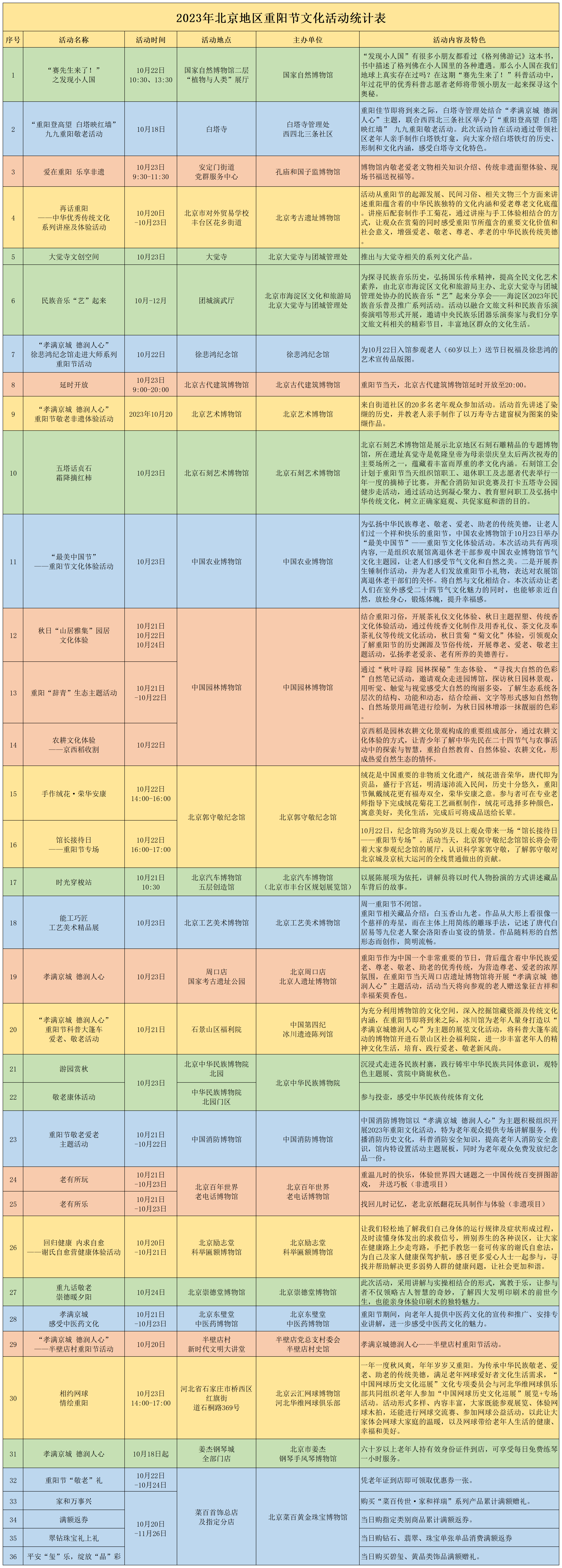 中國網北京10月23日訊(記者 秦金月)記者從北京市文物局獲悉,今年重陽節期間,北京地區博物館將推出36項展覽及文化活動。