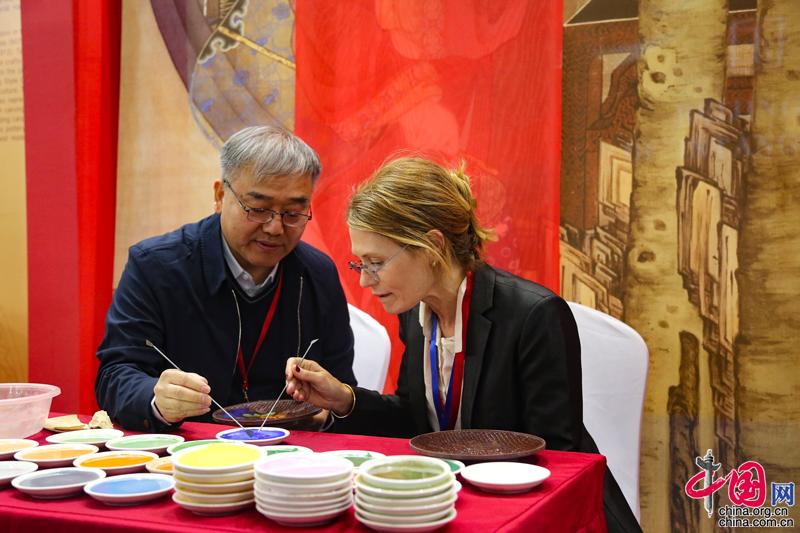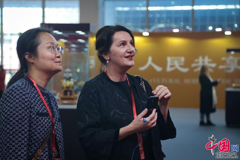斯洛文尼亞駐華大使蘇嵐(右)在“國際非遺展覽”參觀。中國網記者 鄭偉 攝