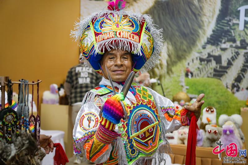 來自秘魯的傳統舞蹈“剪刀舞”舞者。中國網記者 鄭偉 攝