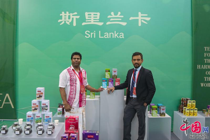“茶和天下”斯里蘭卡展區。圖為斯里蘭卡駐華大使館茶葉推廣官Tharanga Abeysekara(右)與中國-斯里蘭卡經貿合作商會副主席 Anura Banda(左)。中國網記者 鄭偉 攝