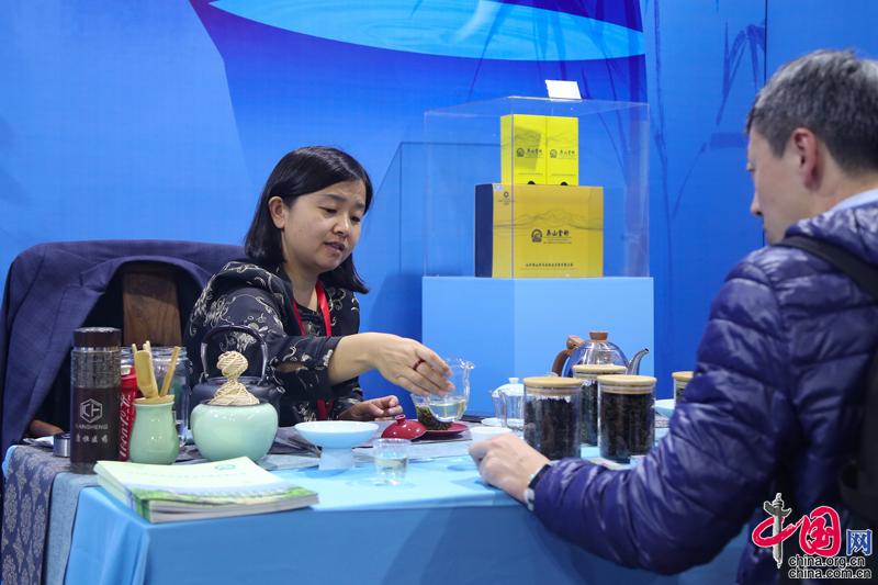 “茶和天下”山東展區-泰山綠茶。中國網記者 鄭偉 攝
