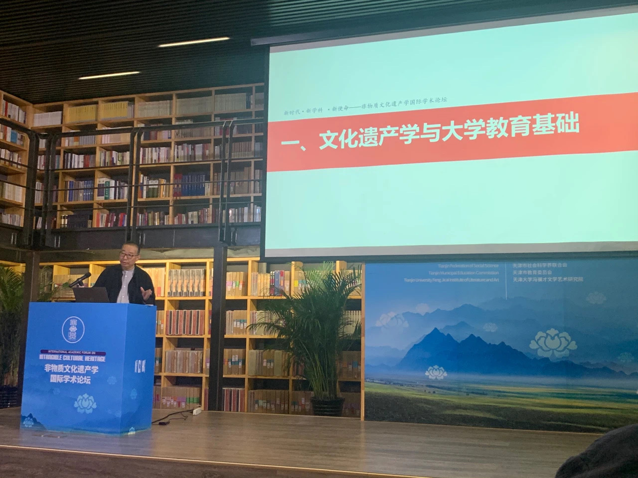 按:2023年10月23日,“新時代·新學科·新使命——非物質文化遺產學國際學術論壇”在天津大學馮驥才文學藝術研究院開幕,本次論壇以非物質文化遺產學的學術體系和學科體系為論域,召集國內外非物質文化遺產保護領域和理論研究領域的領軍學者,各抒崇論、集思廣益,一起為非物質文化遺產學夯實學科基礎,共同構建起新時代中國非物質文化遺產學多元共進、江海同歸的學科格局,為中國非物質文化遺產的系統性保護和可持續發展貢獻力量。教育部、文旅部、住建部、天津市委宣傳部、天津社科聯、天津大學校領導、聯合國教科文組織駐華代表夏澤翰、天津大學馮驥才文學藝術研究院院長馮驥才在論壇開幕中致辭并發表主題演講,中國文聯副主席、中國民間文藝家協會主席潘魯生出席開幕式作主旨發言。