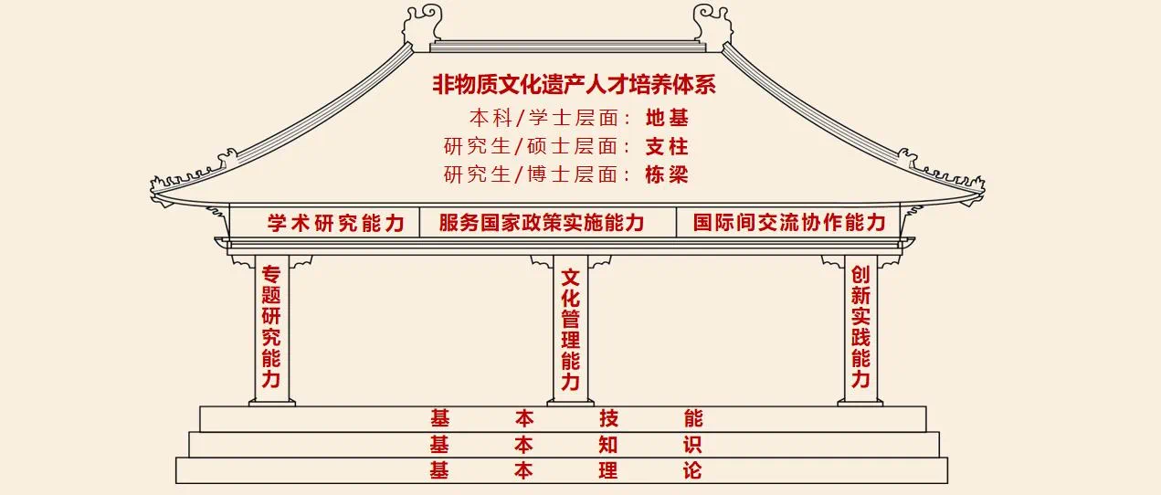 潘魯生認為,學科體系如同蓋房子,在非物質文化遺產學的人才培養體系中,本科是地基,碩士是支柱,博士是棟梁。立足交叉學科屬性,建構系統化的學科體系,以社會需求為導向,建立多層次、多元化的人才培養模式,面向新時代、融合新技術、研究新問題,服務國家文化戰略的發展需求。