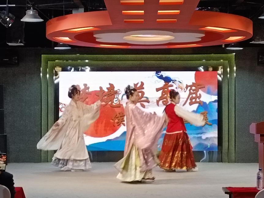 漢服長春傳統文化研究會的美麗漢服模特為畫展表演助興,為傳承傳統文化助力。