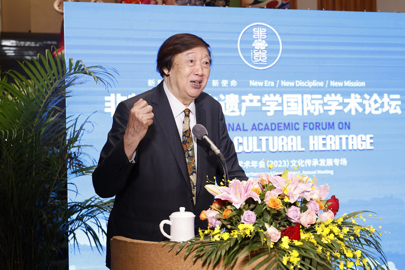 開幕式上,馮驥才表示,“非遺學”是本世紀世界人文領域新崛起的一個充滿學術活力的新學科。但這個學科還不具有完備而成熟的知識體系與理論體系,從本體、認識、價值、倫理等學理層面,到非遺的保護策略、方法、技術等工具層面,再到非遺人才培養的教育層面,以及非遺的傳承傳播等一系列問題,都有待學界去窮究學理、層層深入。沒有嚴謹的、堅實的非遺學的知識體系和理論體系,就難以完成對非遺系統性的保護,“尤其是非遺的活態性,使它具有向負面變異的可能。這是非遺工作的難點,也是非遺學的難點和壓力?!瘪T驥才認為,非遺學要對現實負責,而這個責任需要學界共同承擔。