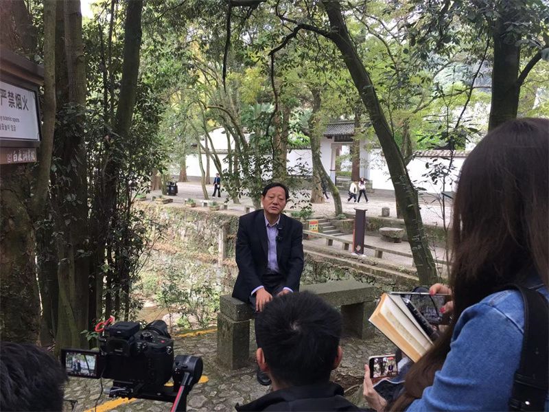 原白鹿洞書院管理委員會副主任、江西省書院研究會秘書長郭宏達正在接受記者采訪 中國網記者張靜 攝