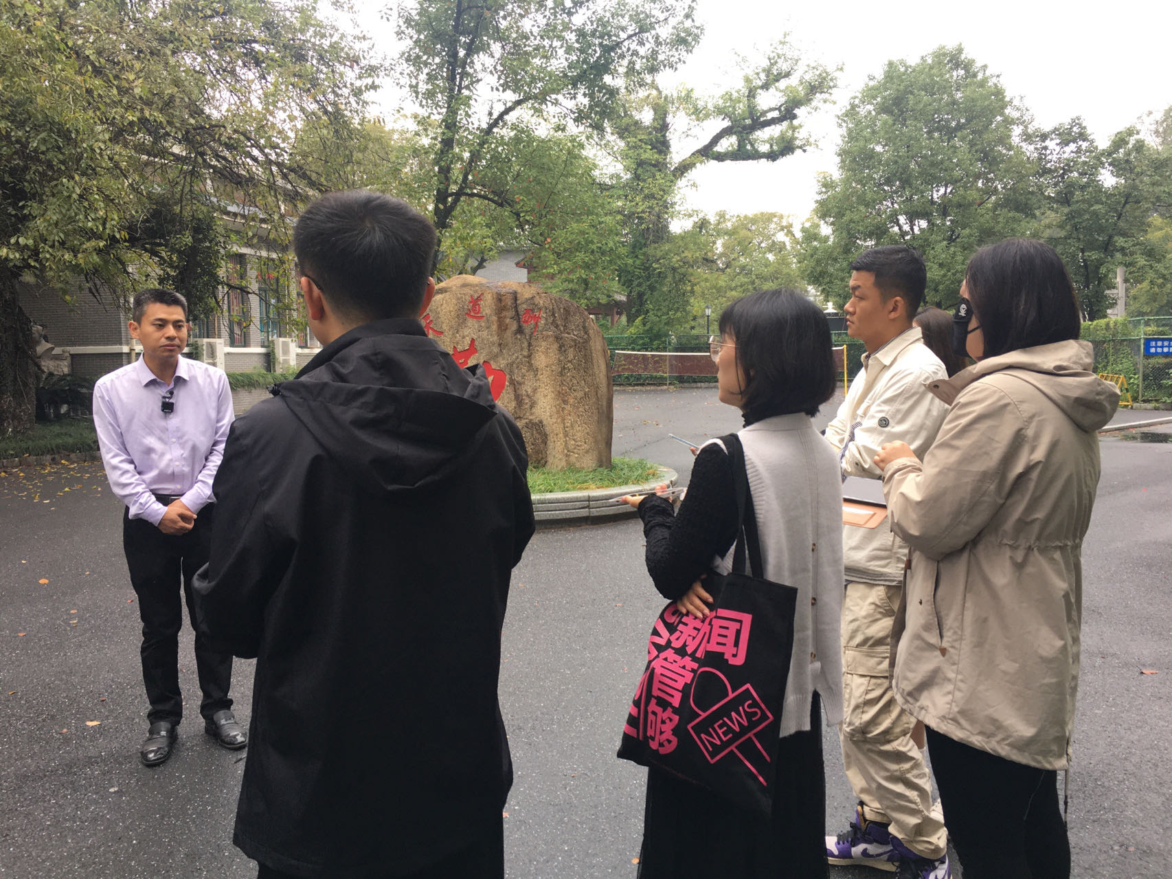 吉安市白鷺洲中學黨委委員謝磊老師正在接受記者群訪 中國網記者 張靜攝