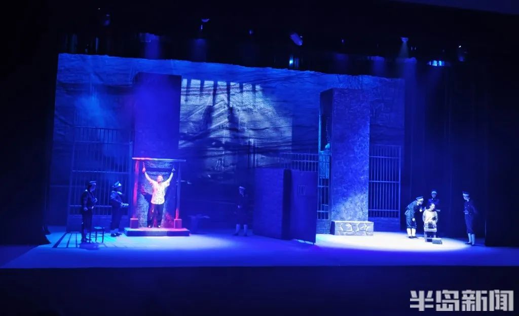 青島大學劇院演出現場。圖為劉謙初和妻子關押在獄中的場景。