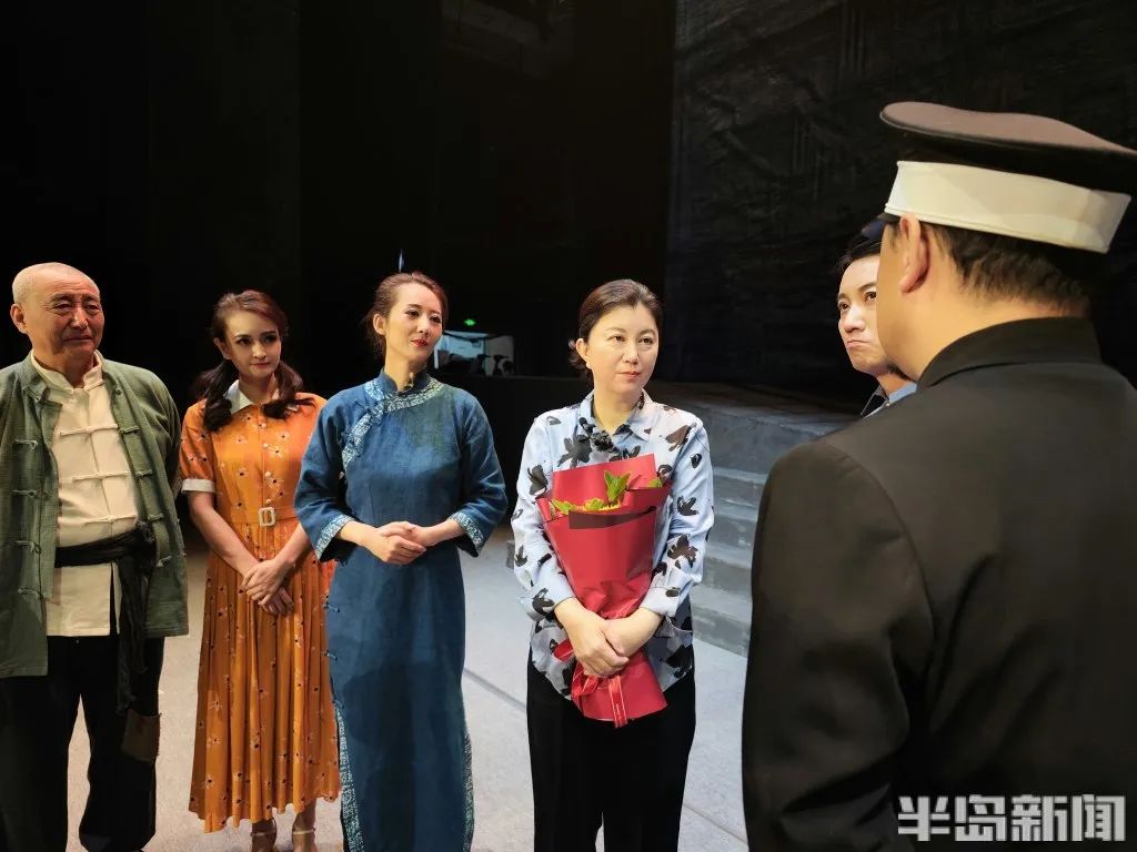 據了解,《暗夜之光》被評為中共青島市委宣傳部2021年度文藝精品扶持工程項目,進入山東省“百年征程時代華章”優秀展演劇目,經過全國戲劇專家盲評打分、三輪篩選,獲得2021年度“戲劇中國”優秀話劇劇本,這也是青島和山東建黨百年唯一獲此殊榮的話劇劇本?!栋狄怪狻返木巹∶鐞燮甲鳛閺臉I30余年的資深媒體人,寫作新聞題材作品是行家里手,近年來也開始嘗試影視題材創作,但創作話劇,對她來說還是首次。據苗愛萍介紹,2017年,她作為平度電視臺臺長,率記者到北京采訪劉謙初的女兒劉思齊。也是那次采訪,讓苗愛萍更加真切地了解了劉謙初的故事?!拔覀兘裉斓男腋I?,是烈士浴血犧牲和親人們割舍親情換來的,我們要銘記他們的付出?!逼蕉仁莿⒅t初的故鄉,作為平度人的苗愛萍在劉謙初母校平度一中烈士雕像前暗自發誓,一定要把劉謙初的事跡宣傳出去。此后,她開始收集資料醞釀創作,決心以話劇藝術形式把劉謙初的事跡搬上舞臺。話劇《暗夜之光》由山東省話劇院組織強大的導演和演員陣容排演。用心設計的舞臺場景,匠心巧妙的燈光設計,蕩氣回腸的音樂旋律,再加上演員的真情演繹,整場話劇高潮不斷,催人淚下,獲得臺下觀眾陣陣熱烈的掌聲。