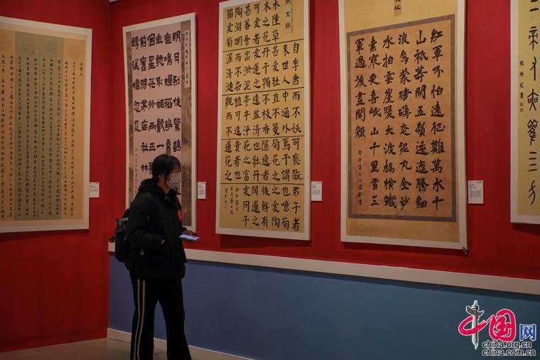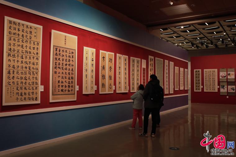 11月18日,觀眾在全國少年兒童書畫美育展現場參觀。中國網記者 鄭偉 攝