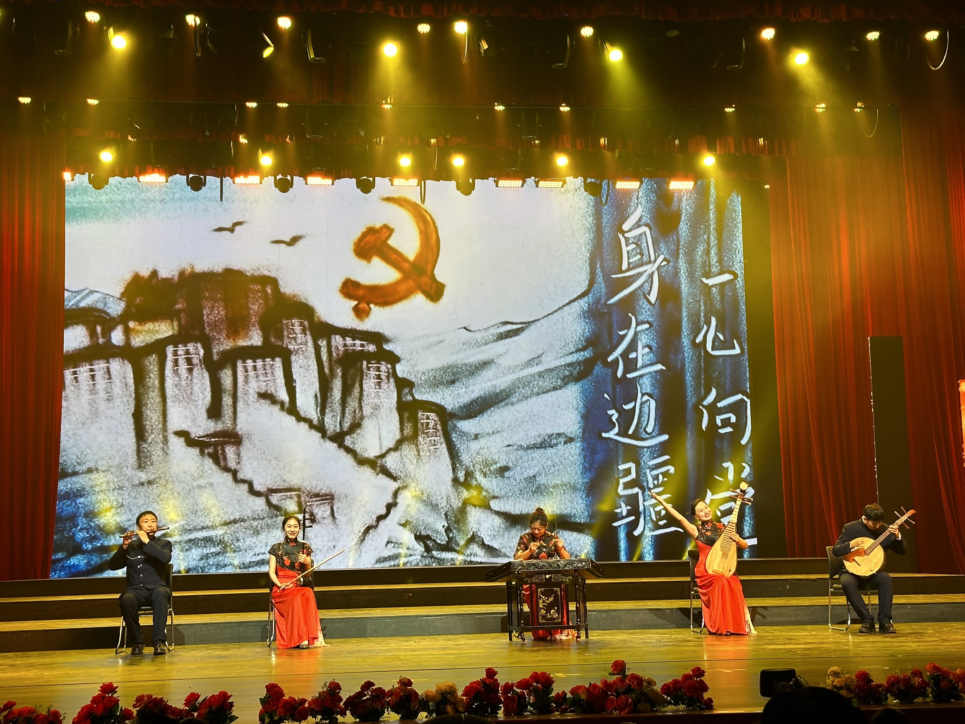 據了解,黑龍江文化交流團隊飛越5000多公里,專程趕到我國海拔最高的地級市日喀則奉上的這場文化盛宴,每一首歌曲、每一支舞蹈、每一個唱段都是經過再三挑選、巧心編排的。比如,民樂合奏《我愛你,塞北的雪》《我要去西藏》,分別用龍江冰雪美景和黑龍江省文聯民間藝術家協會沙畫表演藝術家創作的“身在邊疆,一心向黨”主題沙畫作為背景視頻,不僅給觀眾們帶來優美的視聽享受,更充分展現了龍藏兩地人民心連心、手牽手的深切情懷。