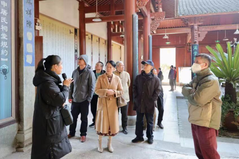 雅集詩人、藝術家在桐廬縣千年古村落江南鎮深澳村采風。(馬禎俊攝)
