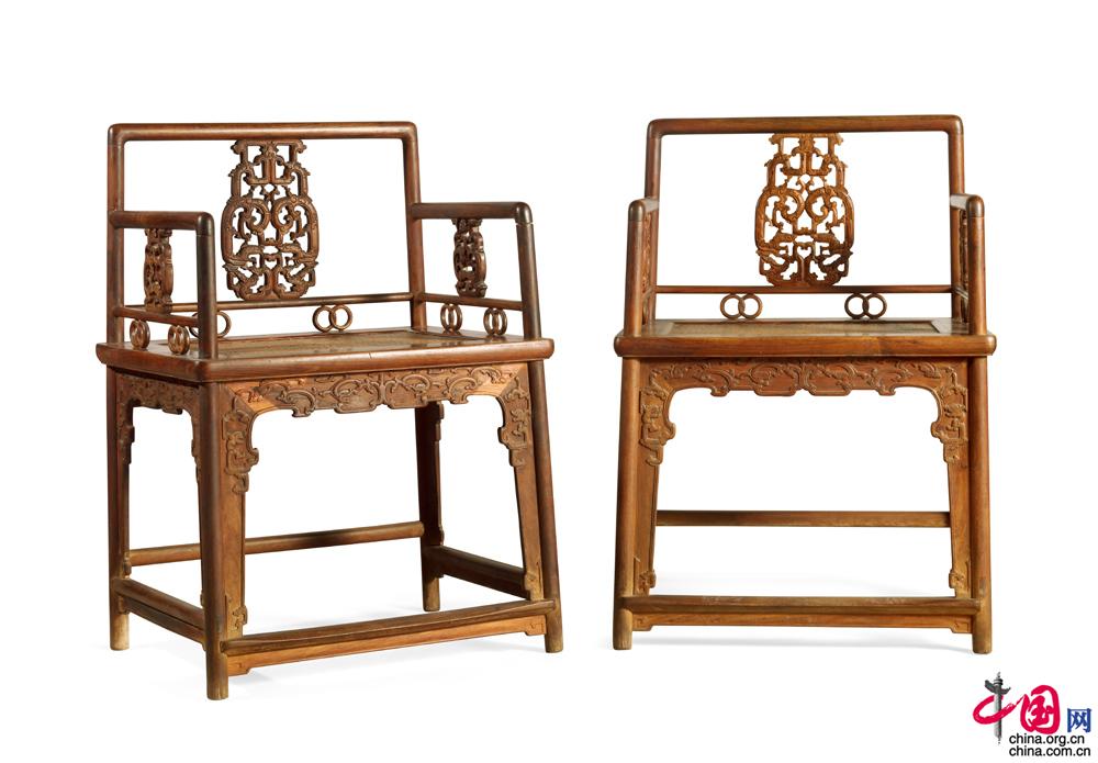 清早期 黃花梨雙螭紋玫瑰椅(一對)