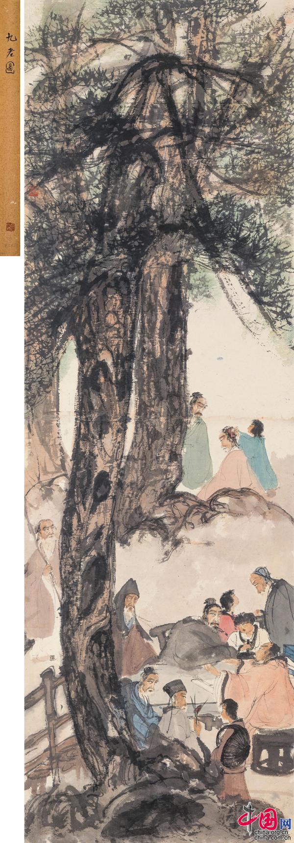 傅抱石 九老圖 立軸 設色紙本178×57 cm