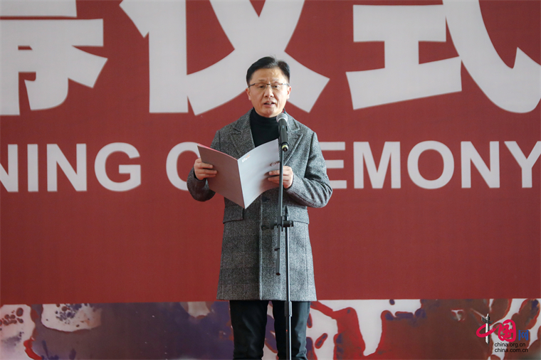 山東美術館館長、山東省美協副主席楊曉剛致辭。中國網記者 鄭偉 攝