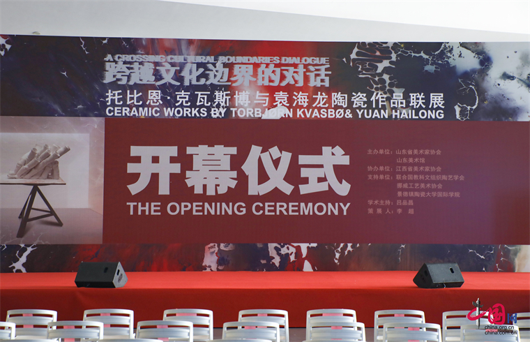 “跨越文化邊界的對話——托比恩·克瓦斯博與袁海龍陶瓷作品聯展”由山東省美術家協會、山東美術館主辦,由江西省美術家協會協辦,由聯合國教科文組織陶藝學會、挪威工藝美術協會、景德鎮陶瓷大學國際學院支持。