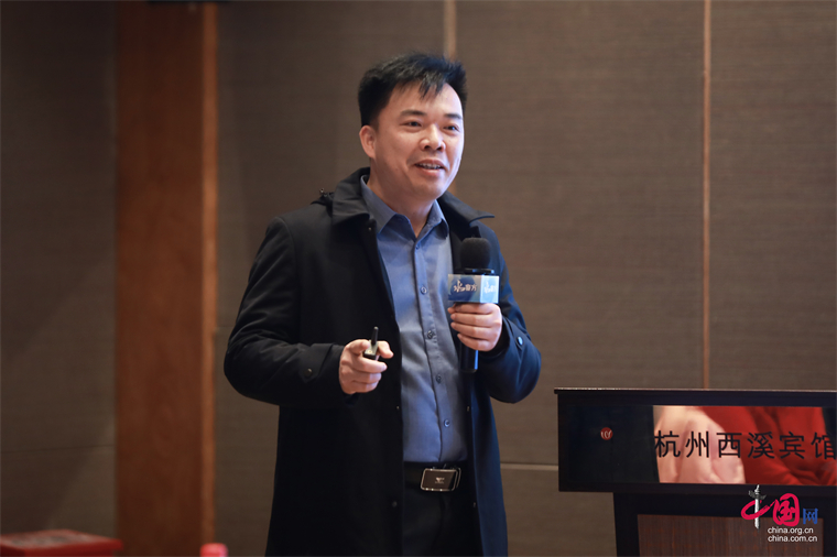 浙江華騰農業科技有限公司董事長、總裁沈建平發言。中國網記者 鄭偉 攝