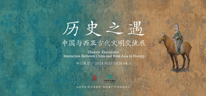 “歷史之遇——中國與西亞古代文明交流展”于1月12日至4月11日在午門正殿展廳舉辦。展覽分“東西輝映”和“大路相連”兩個單元,著力講述中國與西亞古代文明共建了絲綢之路的輝煌,帶動了亞歐大陸文明的共同繁榮。展品以故宮博物院典藏為基礎,匯集10家國內外考古文博機構的代表性藏品及圖片,總數達266件(組)。展品年代從新石器時代至明清,涵蓋青銅、金銀、玉石、玻璃、陶瓷、織物、家具、雕塑等門類。其中,河南鄭州雙槐樹遺址出土仰韶文化牙雕家蠶、廣東南越王墓出土西漢銀盒、陜西法門寺地宮出土唐代刻花藍色玻璃盤、新疆吐魯番阿斯塔那墓地出土唐代騎士紋錦、故宮博物院藏商代青銅龍首刀、清乾隆剔紅漆盆玉石葡萄盆景、伊朗國家博物館藏青花海水白龍紋天球瓶等眾多精美文物值得關注。