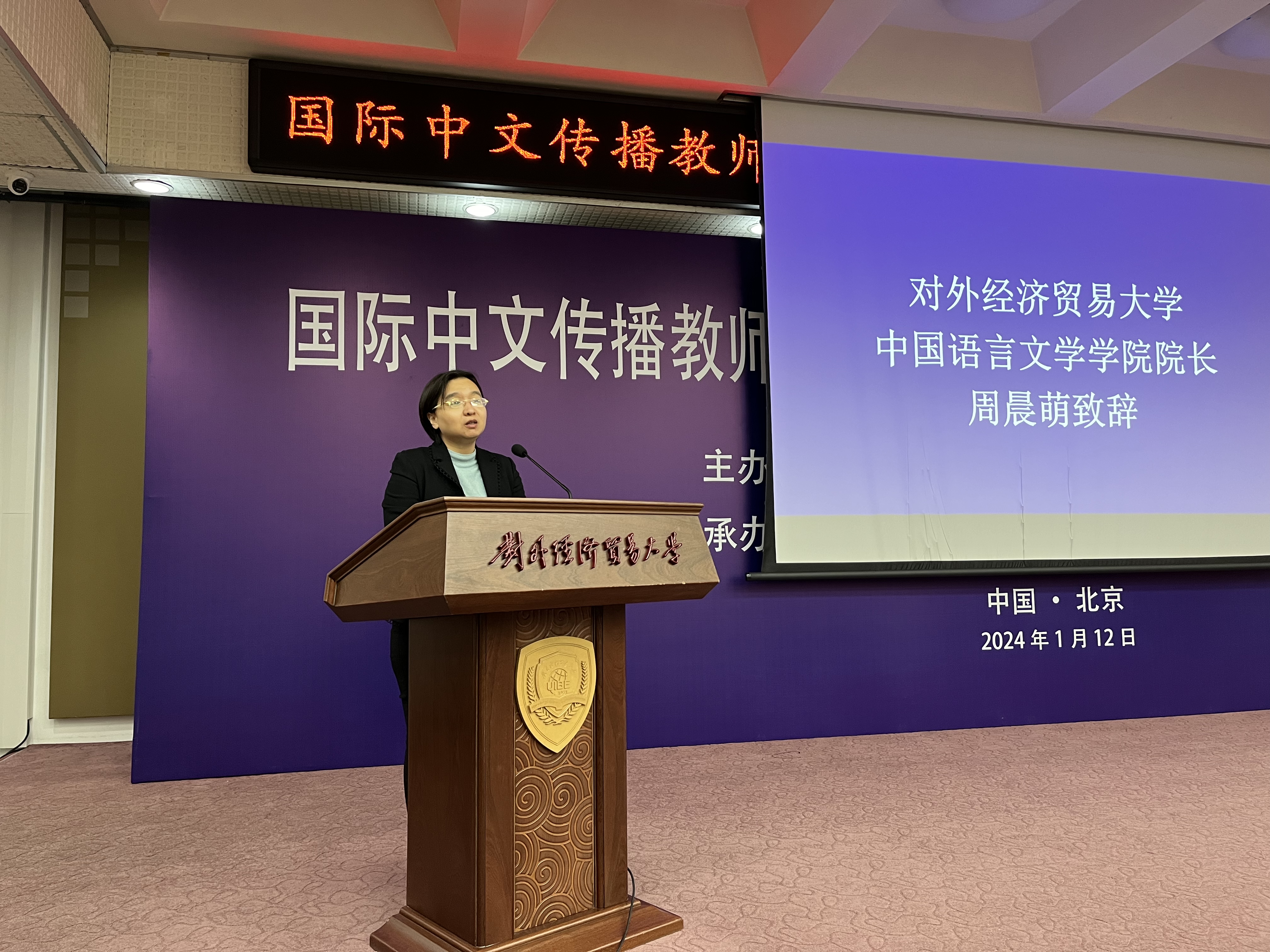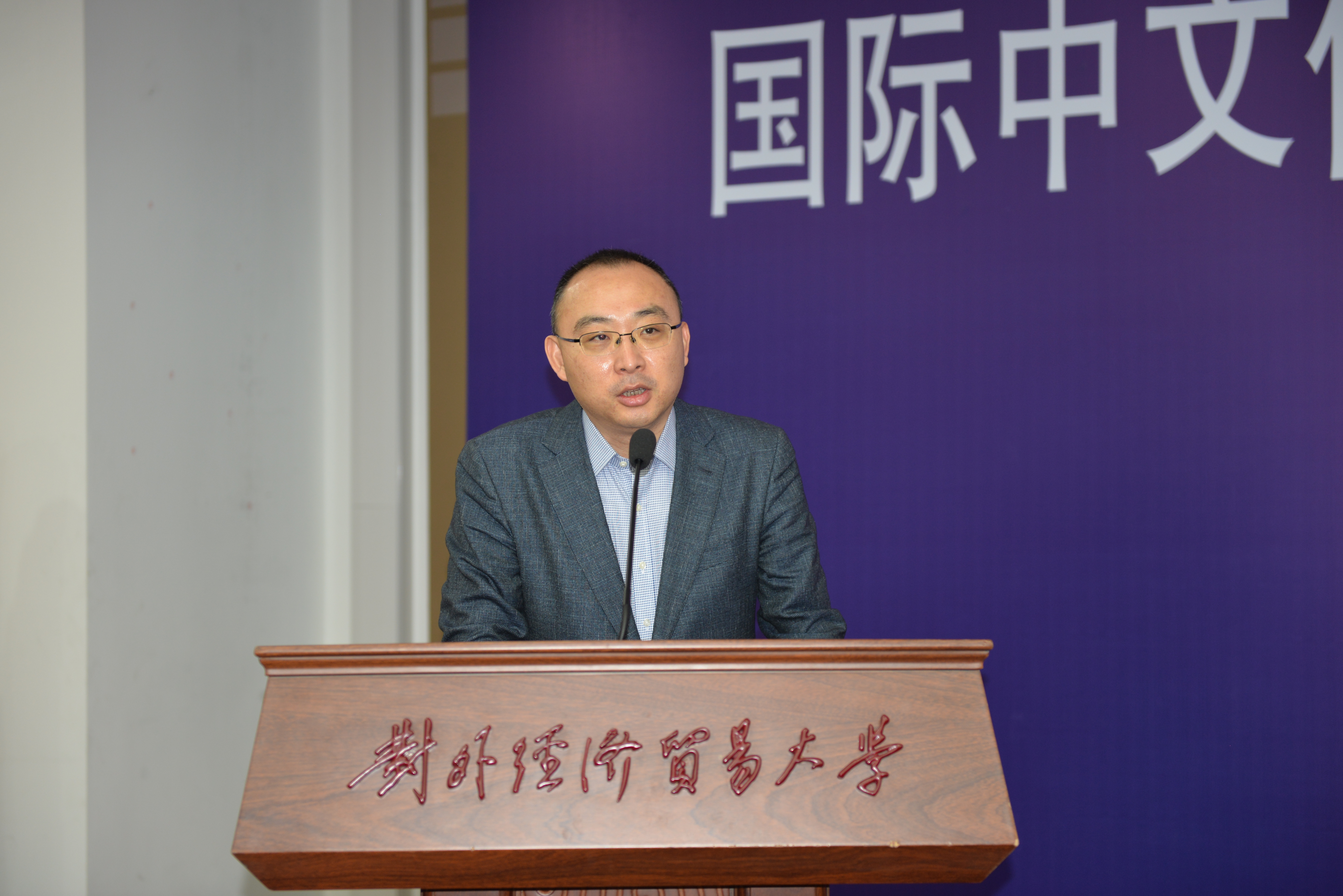 對外經濟貿易大學中國語言文學學院院長周晨萌致辭 中國外文局教育培訓中心供圖