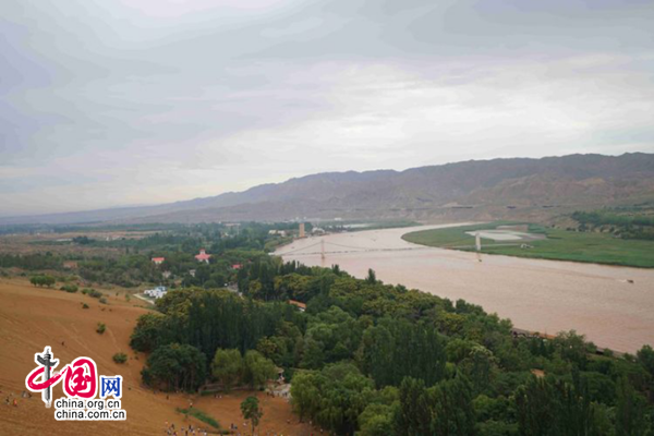 從寧夏中衛沙坡頭遠眺黃河(中國網記者 李培剛 攝)