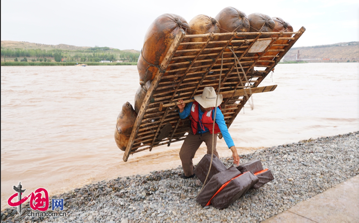 羊皮筏子已成寧夏段黃河多個景區的旅游體驗項目(中國網記者 李培剛 攝)