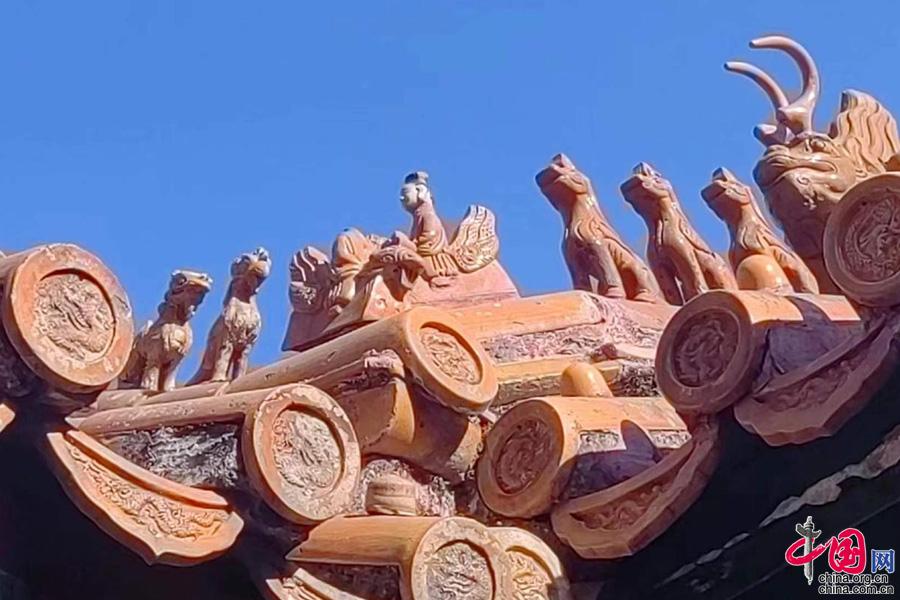 蹲獸的第一位是龍,龍在中國傳統文化中被視為祥瑞的象征,在中國古代也是帝王的象征,龍被認為可以攜水鎮火,起到鎮宅保平安的作用,在故宮屋脊上的使用,也代表了古時皇帝至高無上的尊貴。(中國網發 陳卓攝)