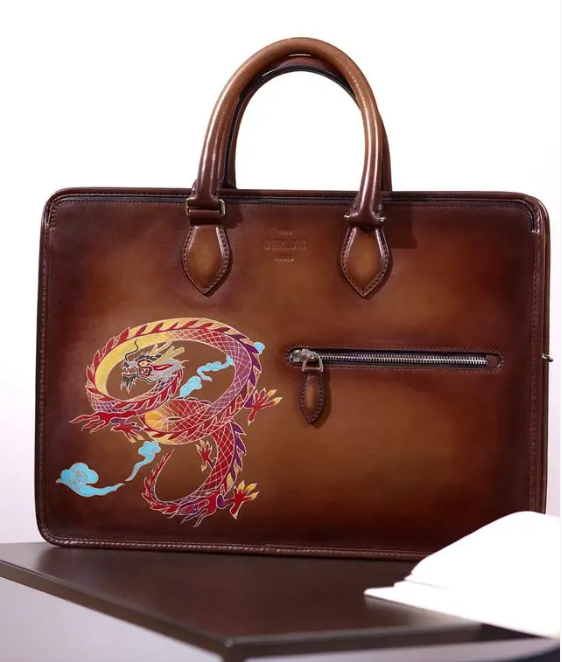 LVMH旗下的頂奢男裝品牌Berluti于今年1月,發布了一個專為中國甲辰龍年設計的膠囊系列,囊括了從糖果盒等生活方式單品、皮具到成衣多個不同品類。顏色選擇的是品牌標志性的可可棕和圣埃美隆紅,契合中國新春喜慶祥和的氛圍。以中華傳統文化為創作靈感,運用品牌刺青工藝和 Patina古法染色工藝,造就彩色龍紋,并巧妙展現 B Thabor Logo圖案,以多種色彩賦予新年美好象征。