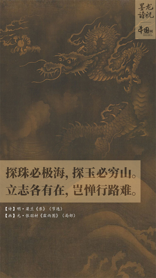 “驪龍珠,驪龍珠,光明燦爛與人殊?!碧街榧刃枰种院愕男拍钆c魄力,也需要清晰縝密的思辨力。歲行龍年,生活中的各種目標都可視為待取之“寶珠”。本文是以選取包含“龍之戲珠“和“人之探珠”的前人畫作,擇“守心逐夢、久久為功”的詩意,恭勵諸君:探珠必極海,探玉必窮山。立志各有在,豈憚行路難!