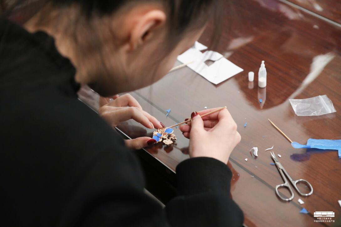 仿點翠胸針/耳飾制作活動現場。中國工藝美術館(中國非物質文化遺產館)供圖